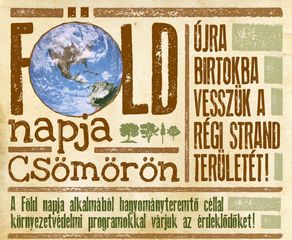 Április 22-én, a Föld napja alkalmából hagyományteremtő céllal környezetvédelmi programokkal készülünk az érdeklődőknek! április 21. autómentes nap az általános iskola diákjainak április 22. vasárnap – Régi strand gyalogos és kerékpáros túrák a Csömöri Körtúra egy szakaszán Környezetvédelemmel, környezettudatos életmóddal kapcsolatos előadások kézműves foglalkozás újrahasznosítható anyagokból interaktív játékok kicsiknek és nagyoknak a környezettudatos vásárlás és komposztálás témájában […]